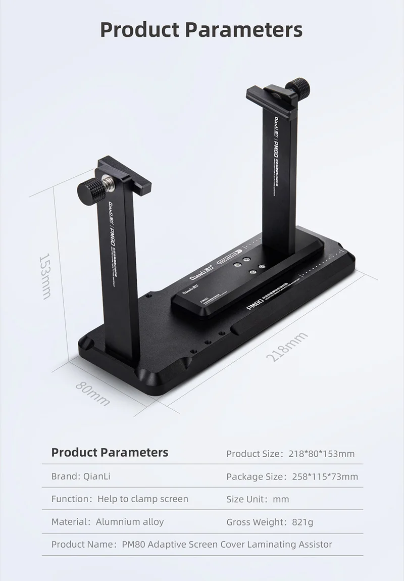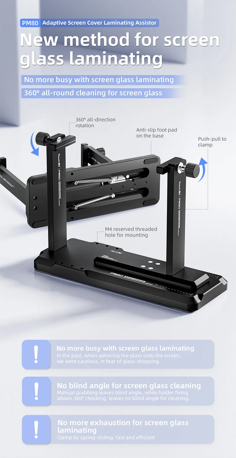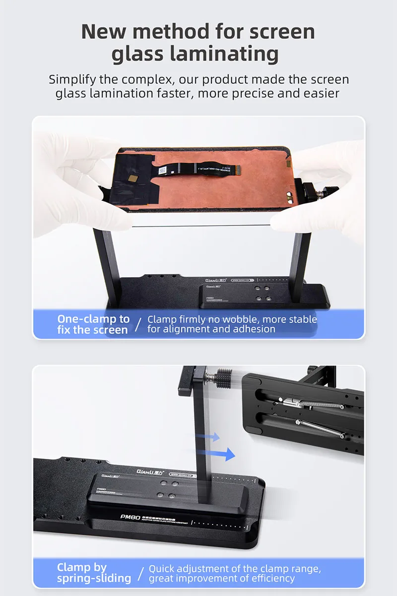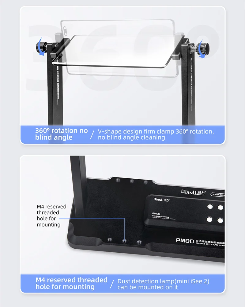 QIANLI PM80 Adaptive LCD Screen Cover Laminating Assistor for Mobile Phone Maintenance 360° All-round Cleaning Clamping Tool