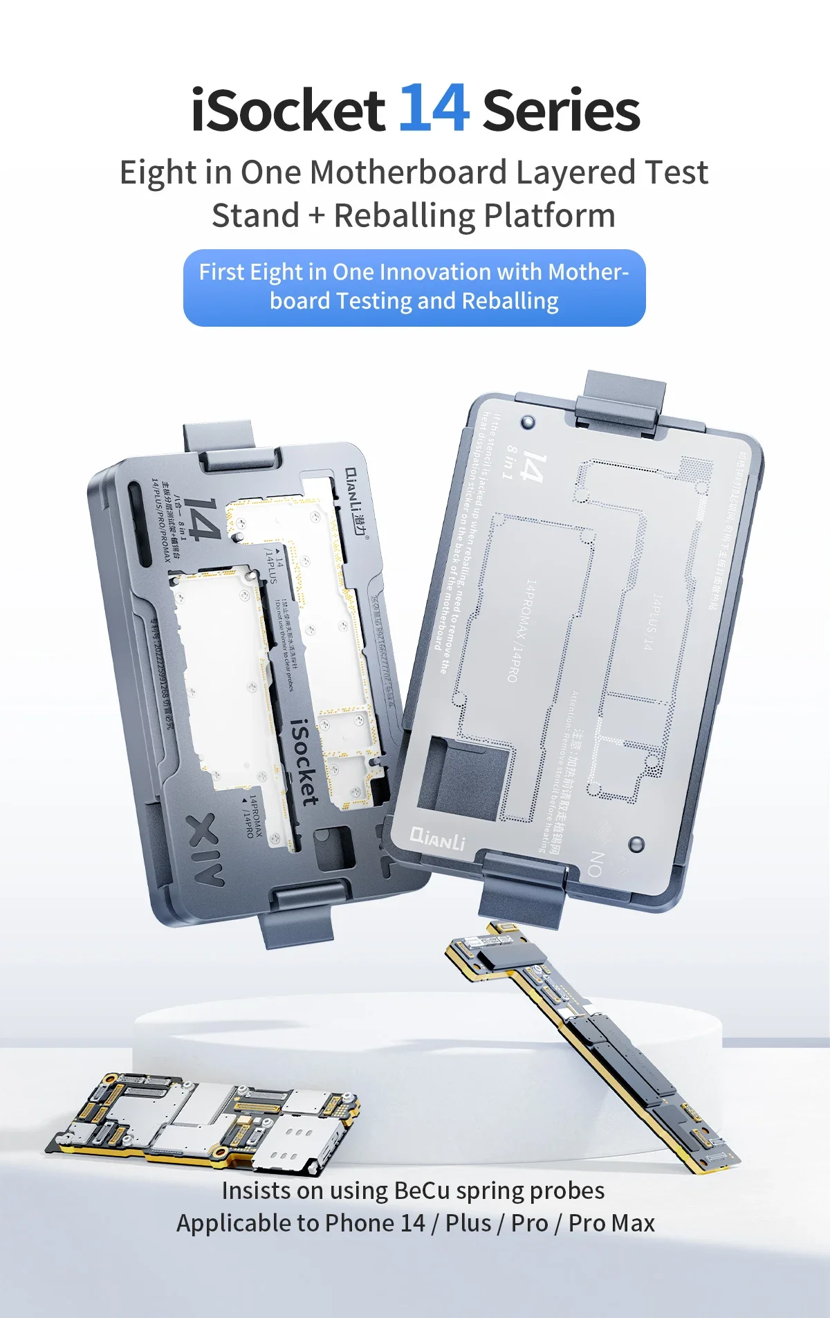 QIANLI iSocket for iPhone 15 Series 8-in-1 Eight in One Motherboard LayeredTest Stand + Reballing Platform